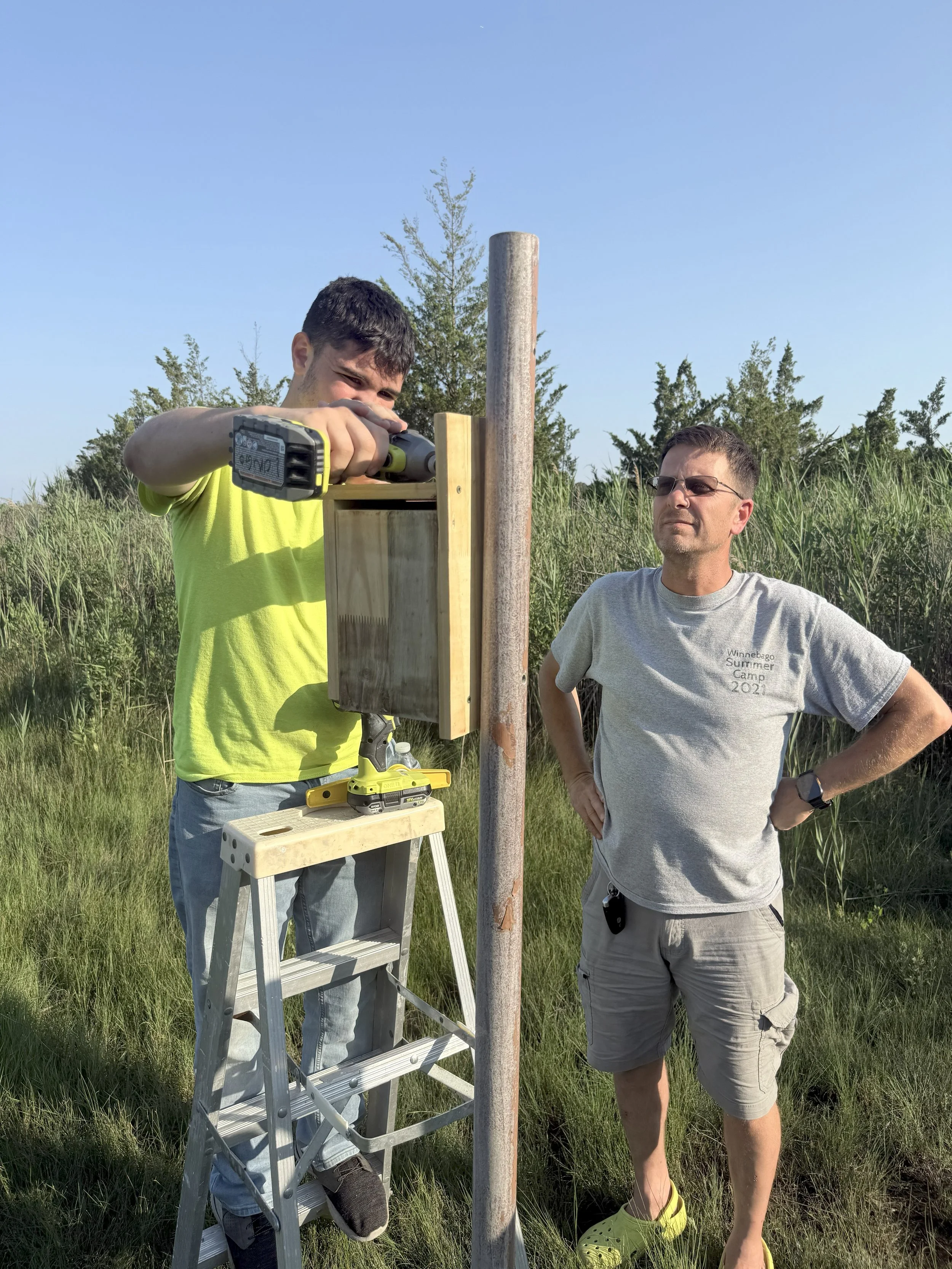 Under the technical guidance of ecologist and NREF board member Jessica Druze, and with the assistance of NREF member Jim Boyd, local Scouts from Scouting America Troop 61 have installed new bird boxes throughout the wildlife preserve surrounding the Lighthouse Center for Natural Resource Education.