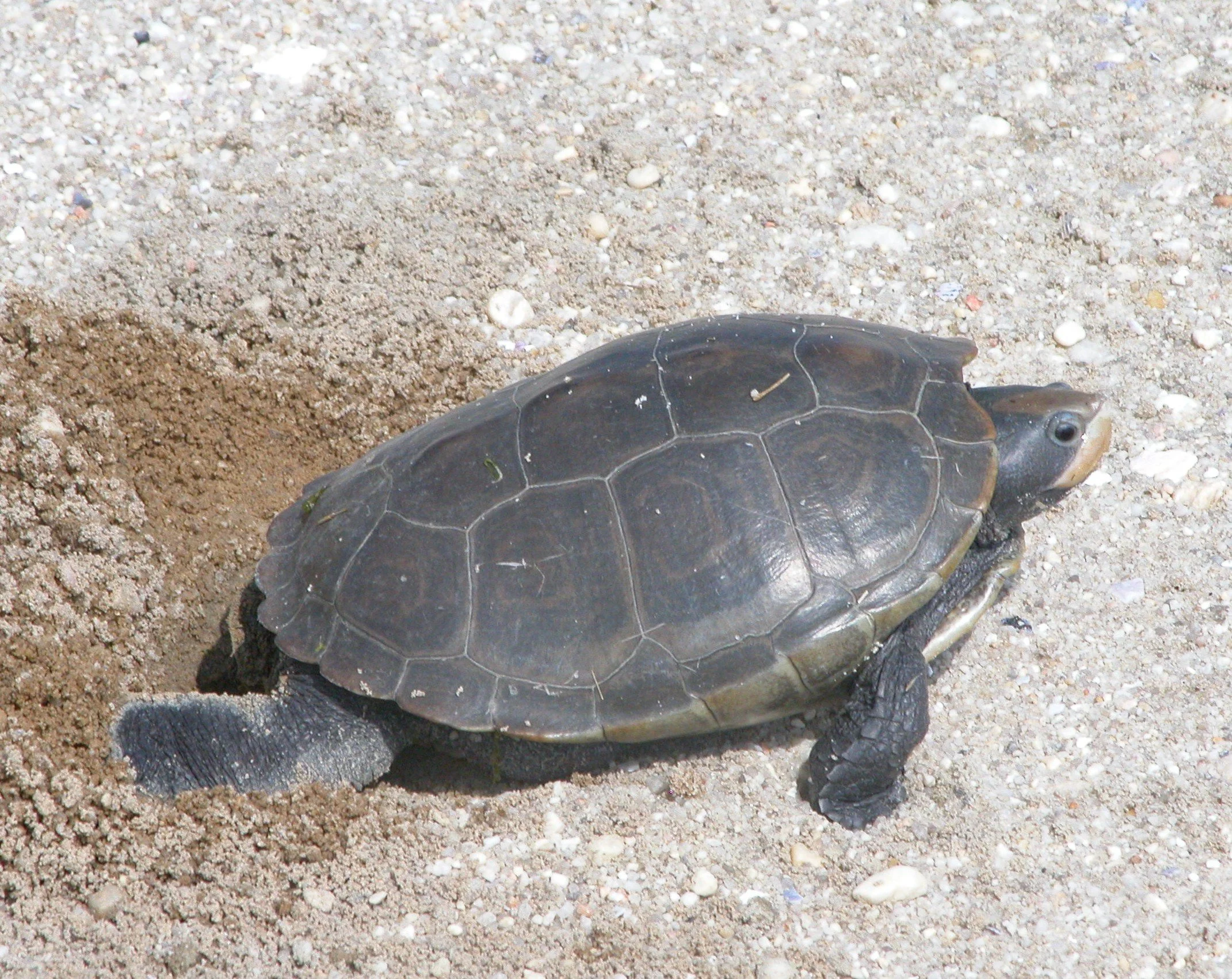 Diamondback terrapins, Malaclemys terrapin, inhabit estuaries along the east and Gulf coasts of North America. One such estuary, Barnegat Bay, New Jersey, is considered one of the most anthropogenically altered estuaries in the United States. Barnegat Bay’s marsh and shoreline habitats have been filled with anthropogenically impacted substrate dredged from the bay floor, called dredged sediment. Terrapins use anthropogenically impacted areas for nesting that can negatively impact hatching success of terrapins. The introduction of non-native plants and structures (i.e., fences) shade nest sites, reducing nest temperature which affects the incubation duration and gender of terrapin embryos. This study investigated population sizes, hatching success, incubation duration of terrapin embryos in nests in different soil treatments including dredged substrate; and nests exposed to shade at North Sedge Island, Barnegat Bay. Microhabitat nest factors including: temperature, soil conductivity (SC), water potential, and gas composition in different soil types were studied. Our results indicated that freshly dredged substrate had the lowest water potential (MPa) and highest soil conductivity (mS/cm) than all other soil treatments with a100% embryo mortality with no embryonic development past the first stage of development. Nest temperatures at North Sedge Island were at the pivotal incubation temperature in non-shaded treatments and were below the pivotal temperature with 50% shade. Shading of nests caused significantly longer incubation durations and delayed emergence for terrapin embryos compared to non-shaded nests. Terrapin population estimates at N. Sedge Island indicated that 430 + 23 female terrapins utilize the island for nesting, and the earliest reproductive age of females on the island was six years. Increased body size and earlier age of maturity at N. Sedge Island may be a result of the area being located within a marine conservation zone, which has a large expanse of marsh, limited commercial operations, and ample estuarine food resources. This study showed that nest site conditions (i.e., soil texture, shading) are important for the success of diamondback terrapin populations. Effective management practices including the analysis of dredged substrate and washing it prior to its utilization to enhance or restore wildlife habitat are recommended based on the results of this study.
